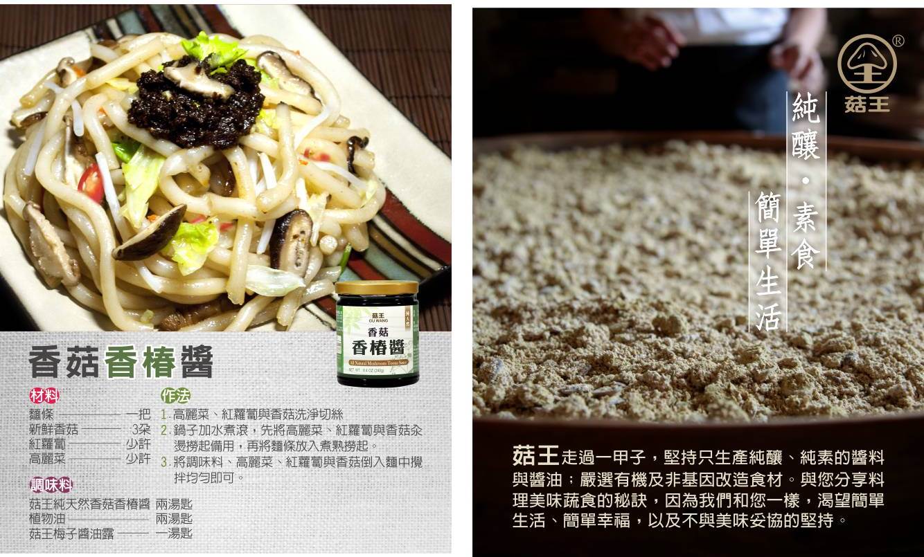 菇王嚴選有機或非基因改造的食材,無化學添加物、無防腐劑。
